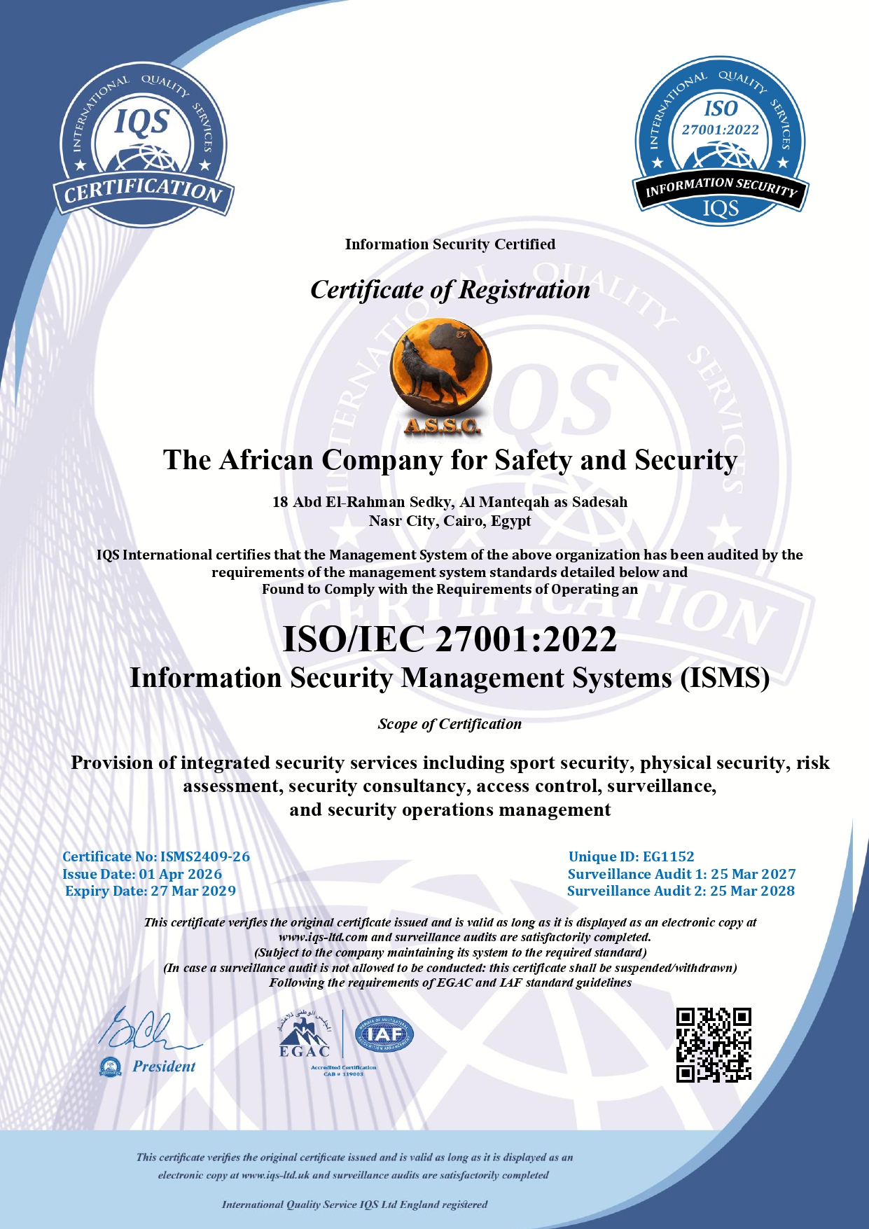 African Security and Guarding Company is proud to be certified with multiple internationally recognized ISO standards, reflecting our commitment to excellence, quality, and operational efficiency in security and guarding services.