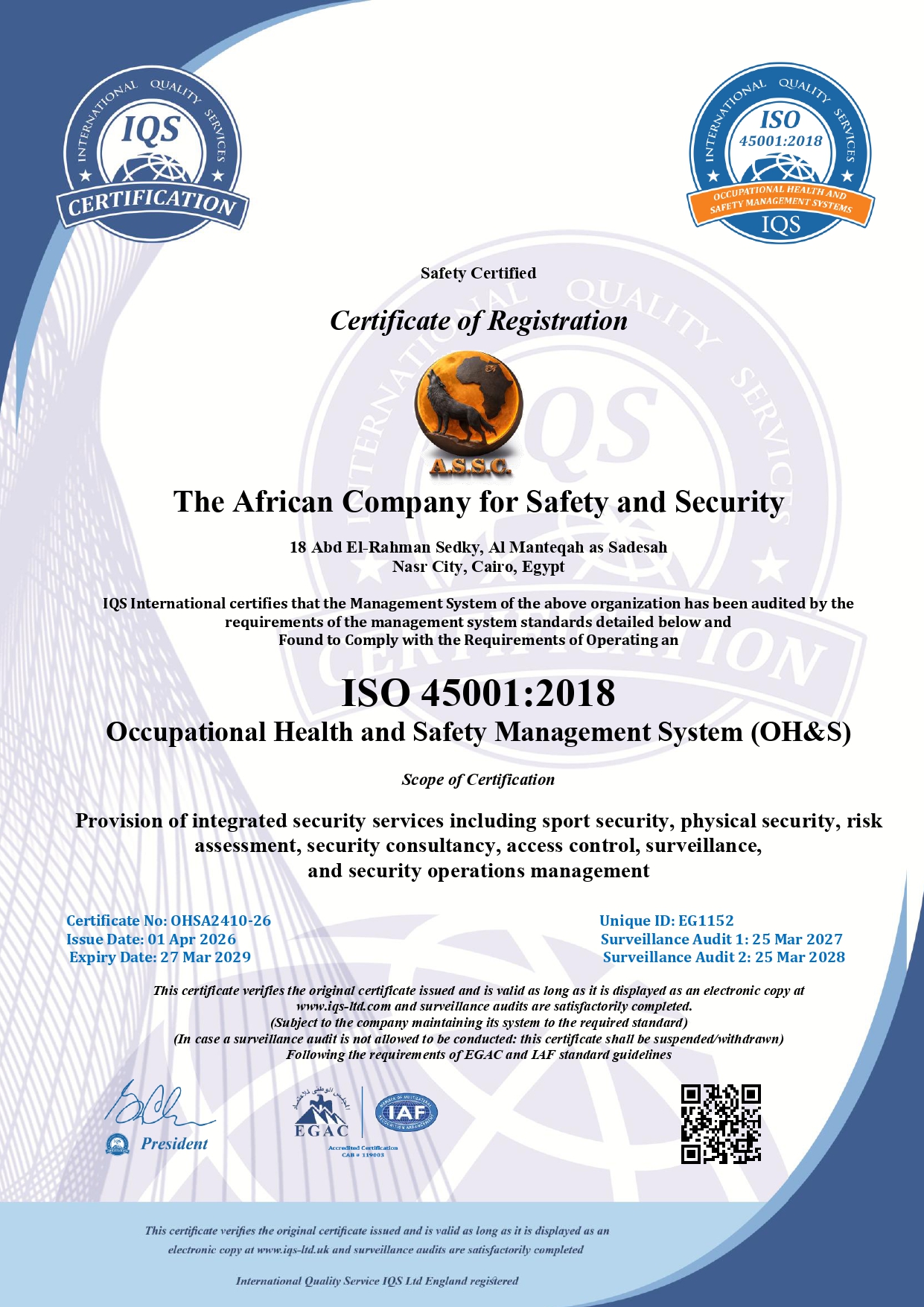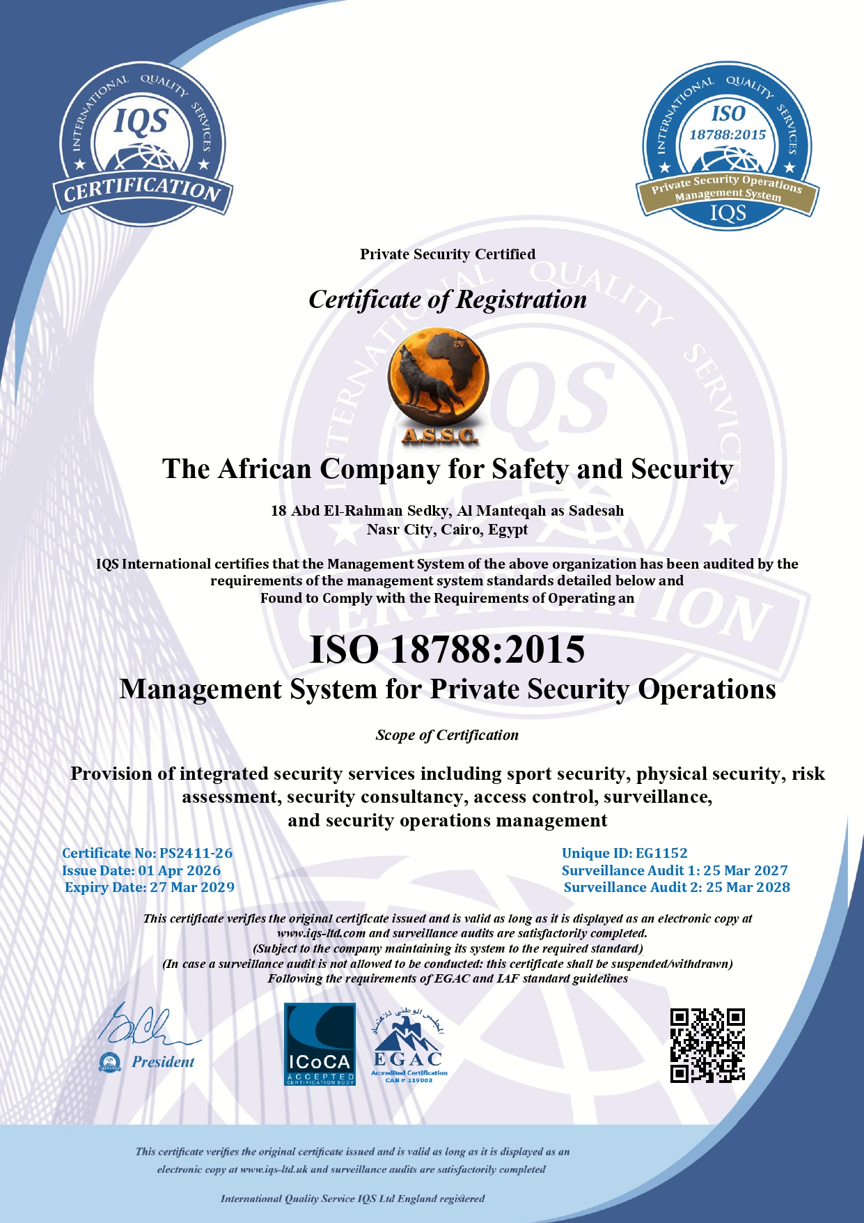 These certifications demonstrate our commitment to continuous improvement, personnel safety, information security, and adherence to international best practices in security operations.